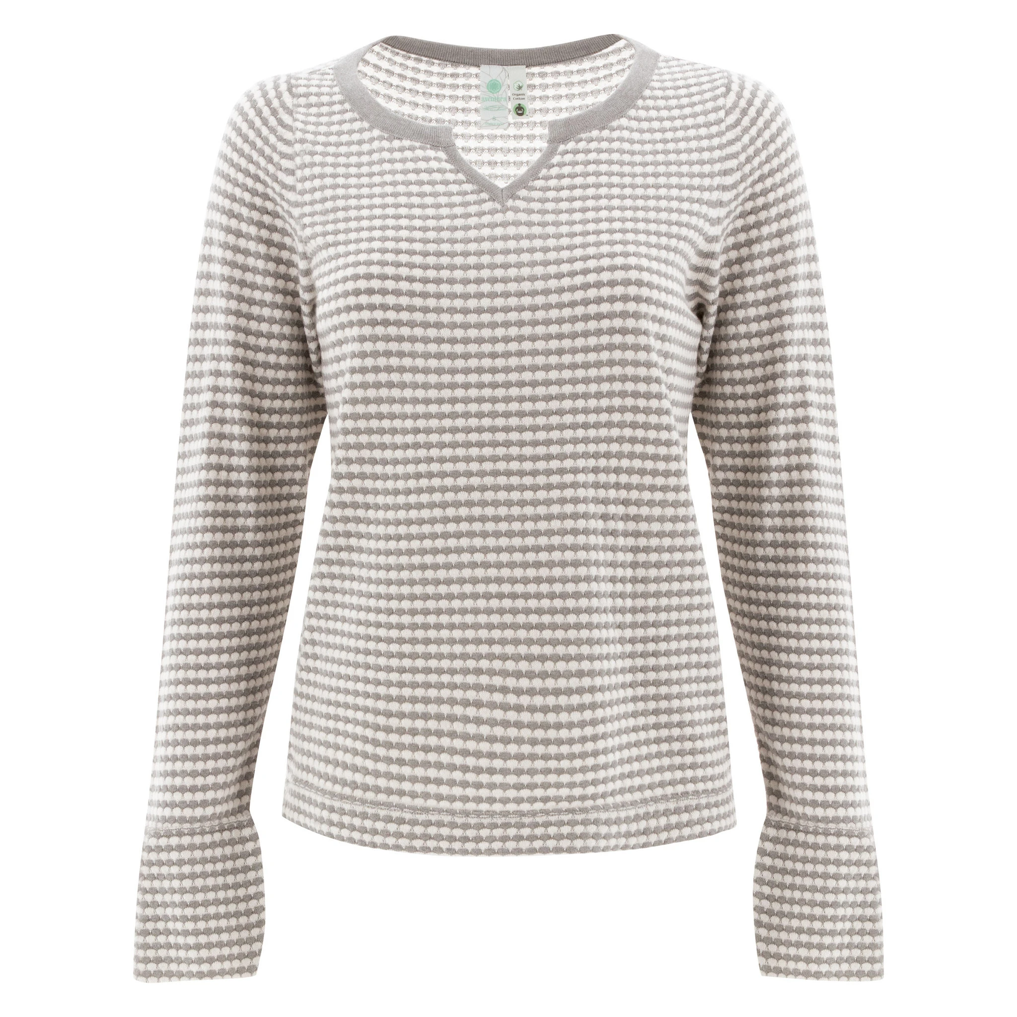 Introducing the Madison Top: a revolutionary layer that optimizes Fair Trade Certified™ production and sustainable fibers to craft a cozy upgrade for your cold-weather wardrobe. This top stands out for its unique and sustainable scalloped knit fabric; a jacquard fabrication crafted from pairing insulating organic cotton, which has a lighter footprint on the environment than conventional cotton, with silky modal. We love that it mimics the style of a classic, heavyweight knit while maintaining the breathable, lightweight nature of a long-sleeve top. Feminine details dazzle, featuring a sweetheart V-neck with contrast trim and tulip-shaped cuffs with soft ruching. The Madison Top is easily an awesome winter layer and a stand-alone top.
