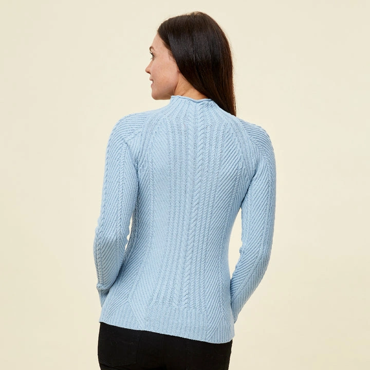 Always a popular style, Lydia Mockneck offers a cable sweater look that’s not too chunky or bulky. This sweater is refined, pretty, and soft to the touch adding style to any outfit.